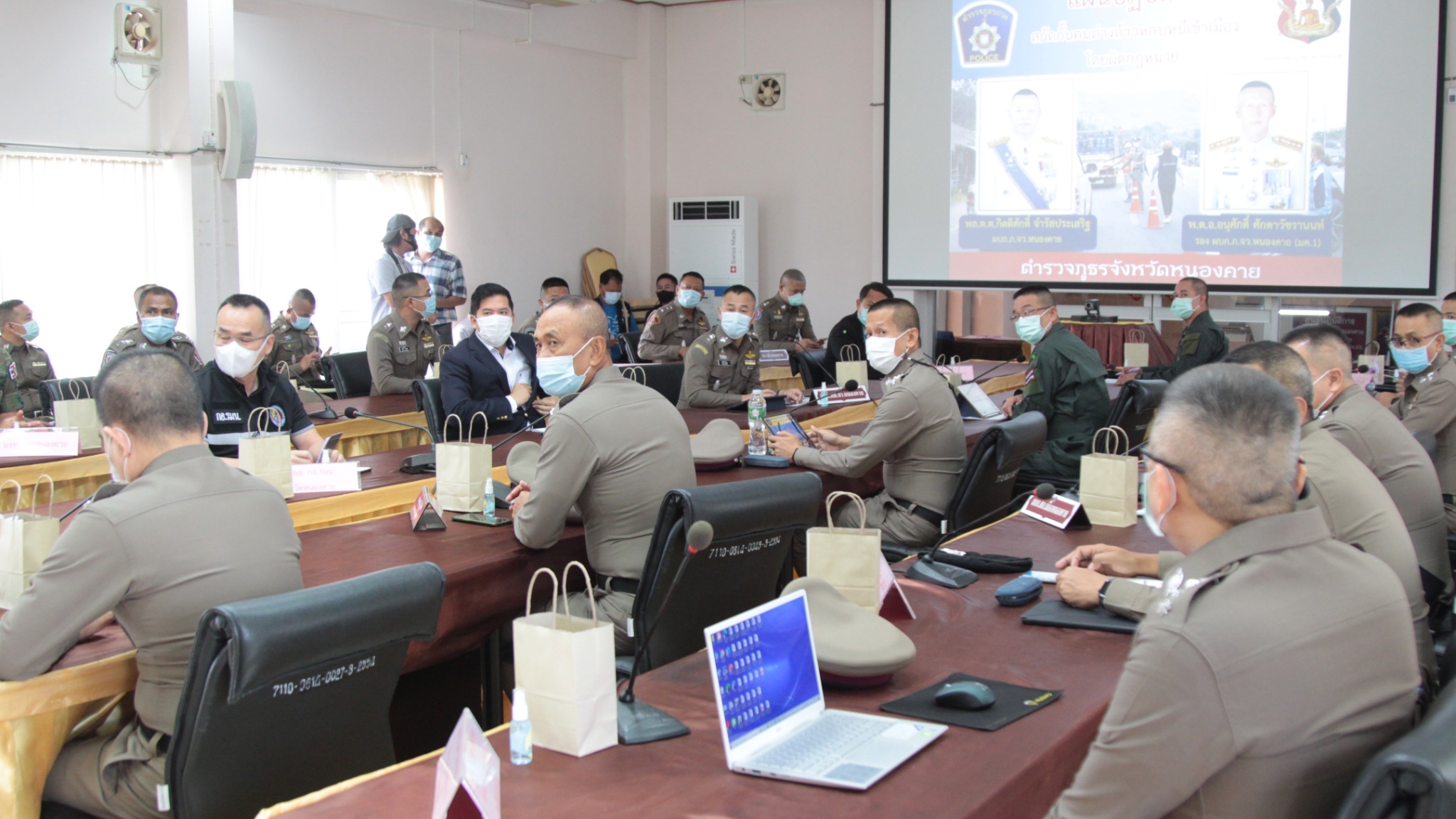 วันที่ 7 พ.ค. 64 เวลา 10.30 น. พล.ต.ท.ยรรยง เวชโอสถ ผบช.ภ.4 พร้อมคณะ ได้เดินทางลงพื้นที่จังหวัดหนองคาย เพื่อตรวจติดตามการป้องกันปราบปรามคนร้ายข้ามชาติและการนำตัวเข้ากักกัน โดยเฉพาะการป้องกันปราบปรามยาเสพติด และแรงงานข้ามชาติ ตามแนวชายแดนจังหวัดหนองคาย โดย มีนายณัฐวัสส์ วิริยานภาภรณ์ รองผู้ว่าราชการจังหวัดหนองคาย , พล.ต.ต.กิตติศักดิ์ จำรัสประเสริฐ ผู้บังคับการตำรวจภูธรจังหวัดหนองคาย , นพ.ชัชวาลย์ ฤทธิ์ฐิติ นายแพทย์สาธารณสุขจังหวัดหนองคาย พร้อมหน่วยงานที่เกี่ยวข้องให้การต้อนรับและบรรยายสรุป ณ ห้องประชุมตำรวจภูธรจังหวัดหนองคาย